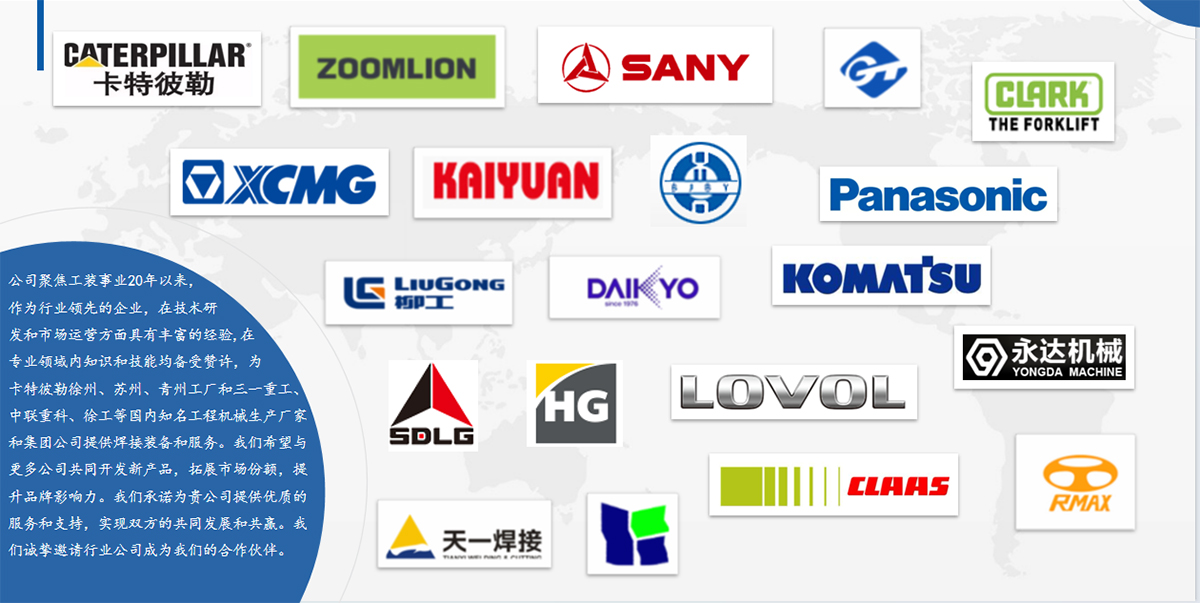 公司成立于2000年,注冊資本1000余萬元,生產面積約10000平。現有員工50余人,專業(yè)工裝設計師15人。公司設運營管理部、制造部、技術質量部職能管理部門,是集ISO質量環(huán)境管理體系、安全標準化企業(yè)為一體的高新技術創(chuàng)新企業(yè)。 公司主要從事工程機械制造、焊接工裝、焊接變位機、智能加工中心夾具、工業(yè)機器人為核心的非標工裝、變位機、智能拼點、生產線集成配套、裝配線、智能機器人工作站集成服務、非標專機設計制造,為客戶提供一站式整體解決方案和交鑰匙項目。公司聚焦工裝事業(yè)20年以來來,專業(yè)性強,為卡特彼勒徐州、蘇州、青州工廠和三一重工、中聯重科、徐工等國內知名工程機械生產廠家和集團公司提供焊接裝備和服務,目前已形成年產值3000余萬元的生產能力。